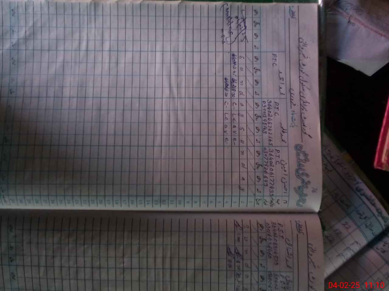 | CNIC | Full Name | Designation | R/C | Absence During Last Calender Month |