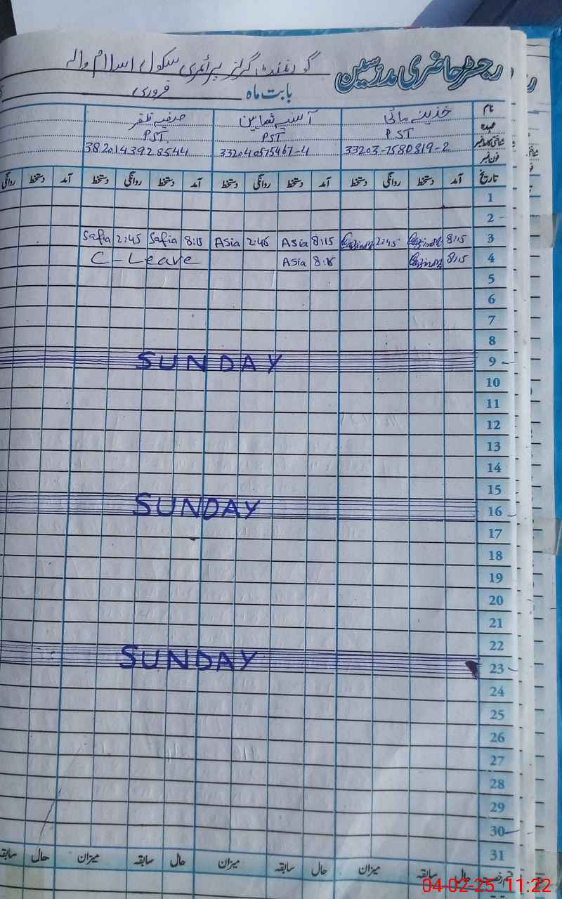 | 38**** | Sa**** Za**** | 1 | 1 | 0 | 0 | 0 | 0 | 0 | 0 | 0 | 0 | 0 | Absent (Un-Authorized) |