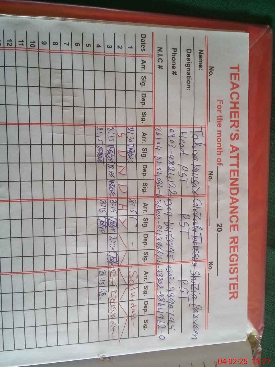 | Name: TA**** KA**** Designation: (School Headmaster's/Headmistress's) PTC/JV Phone/Cell Number: 03**** |