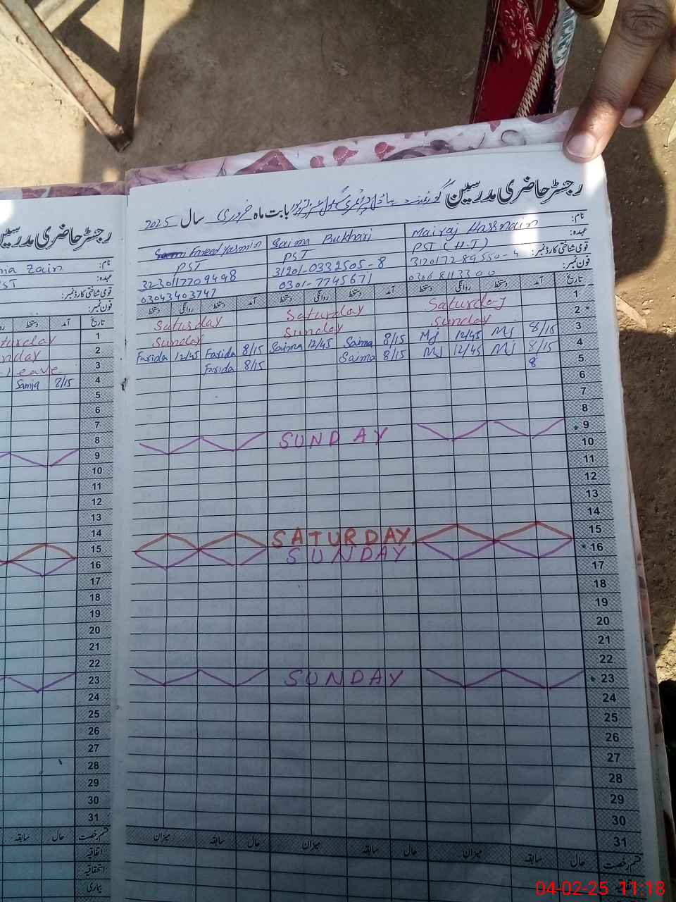 | Name: Ma**** Ha**** Designation: (School Headmaster's/Headmistress's) PST/PTC/JV Phone/Cell Number: 03**** |
