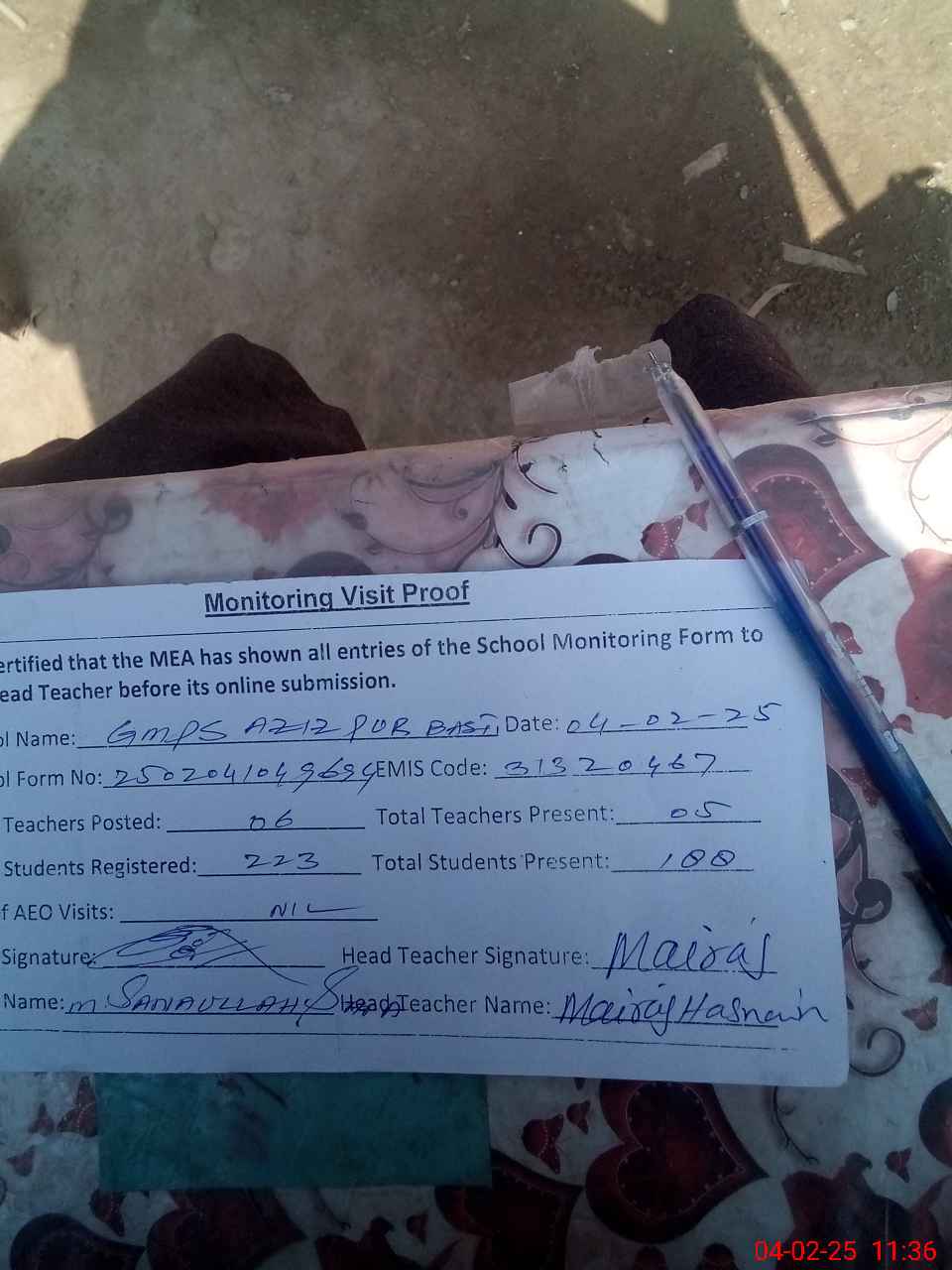 | EMIS Code: 31320467 | Name of School: GMPS AZIZ PUR BASTI AZIZ PUR | |||