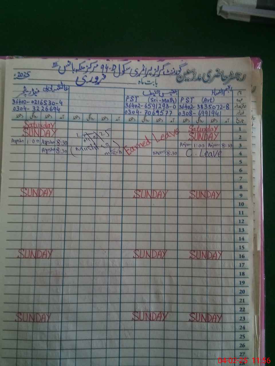 | Name: AN**** UNNI**** Designation: (School Headmaster's/Headmistress's) PST Phone/Cell Number: 03**** |