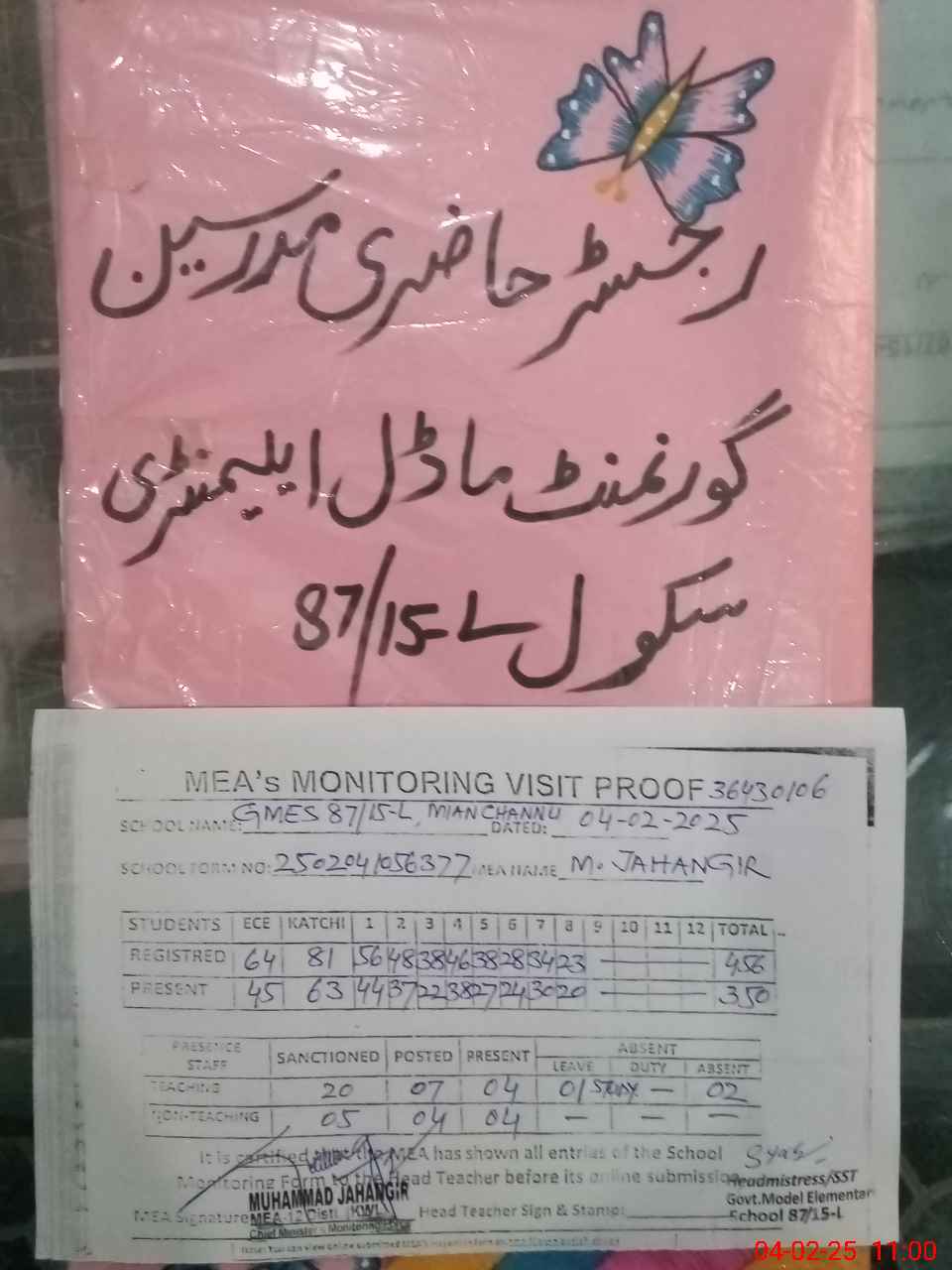 | Attendance Register | Head Teacher | MEA with School | Visit Proof |