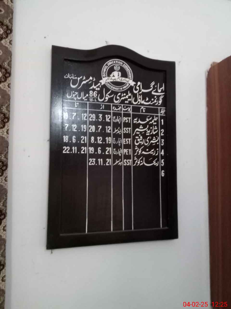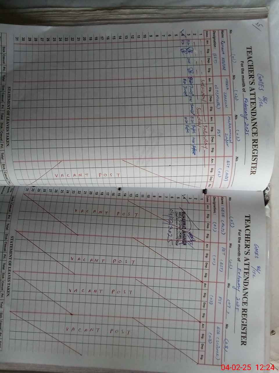 | Name: MA**** ZA**** Designation: (School Headmaster's/Headmistress's) EST MATH Phone/Cell Number: 03**** |