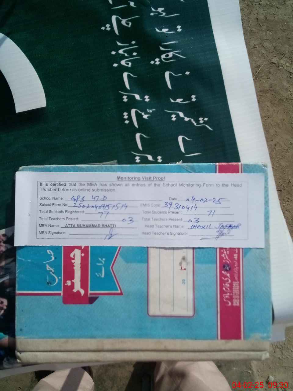 | EMIS Code: 39310414 | Name of School: GPS CHAK NO.47-D | |||