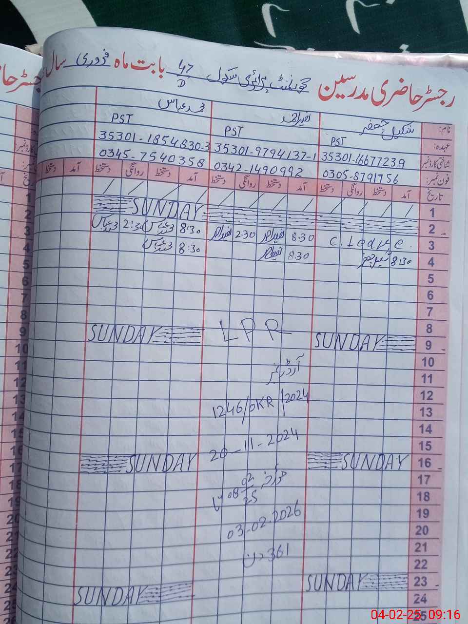 | Name: Sh**** Ja**** Designation: (School Headmaster's/Headmistress's) PST Phone/Cell Number: 03**** |