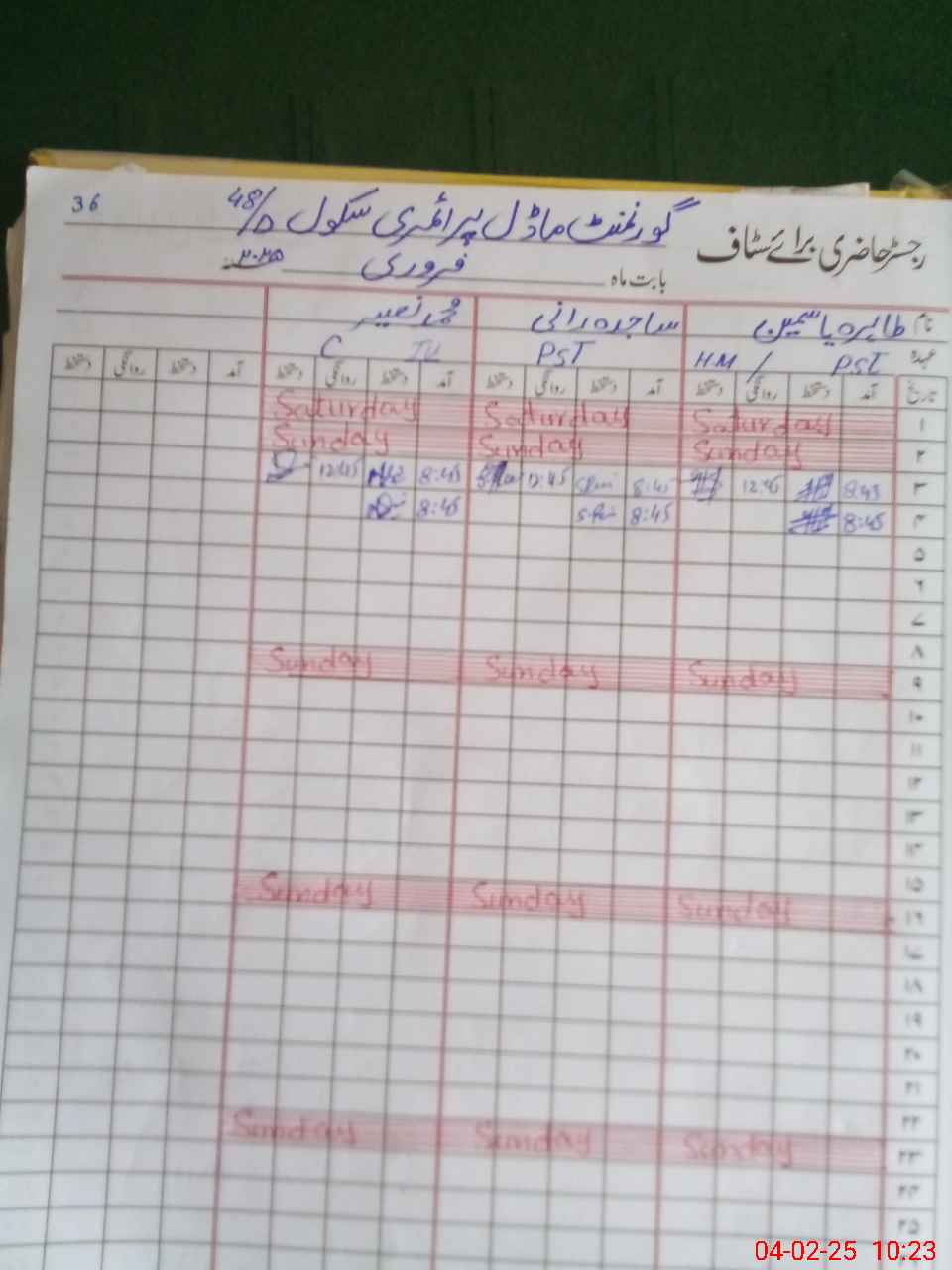 | Name: TA**** YA**** Designation: (School Headmaster's/Headmistress's) PST Phone/Cell Number: 03**** |