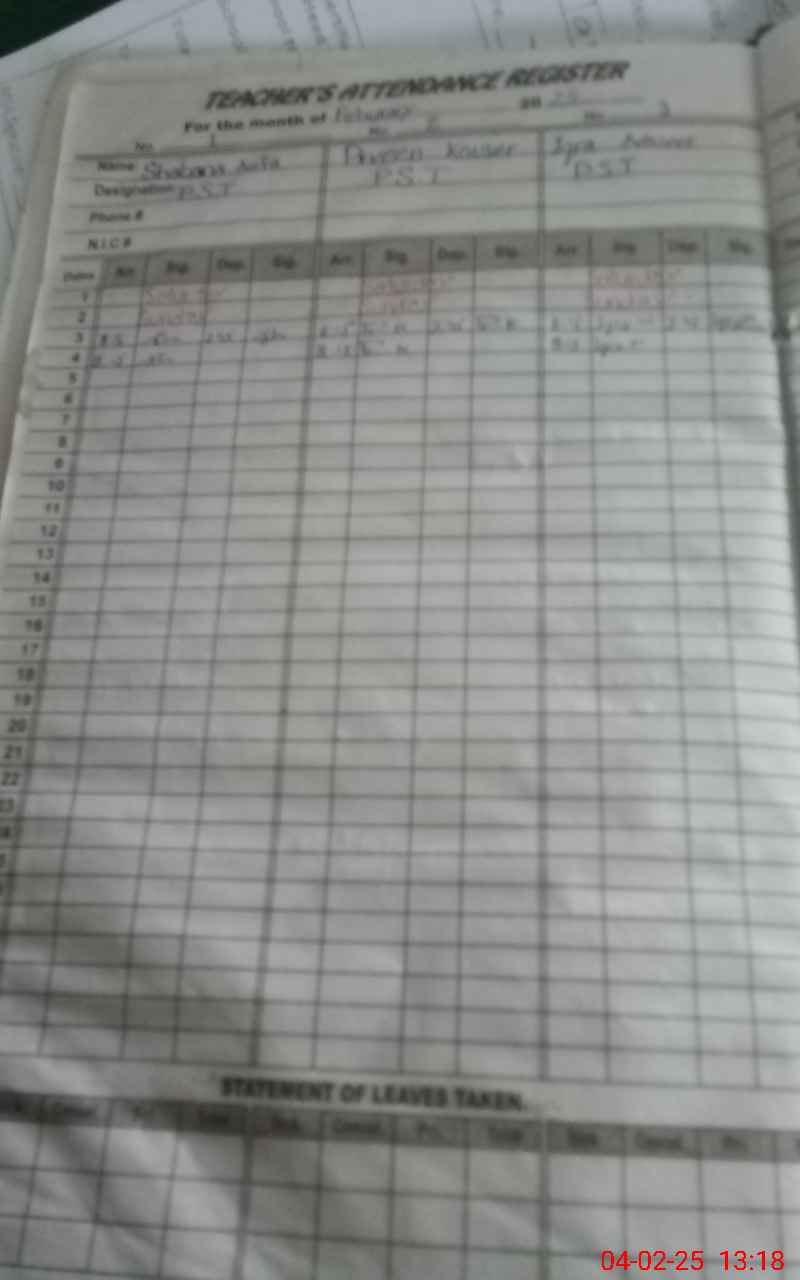 | Attendance Register | Head Teacher | MEA with School | Visit Proof |