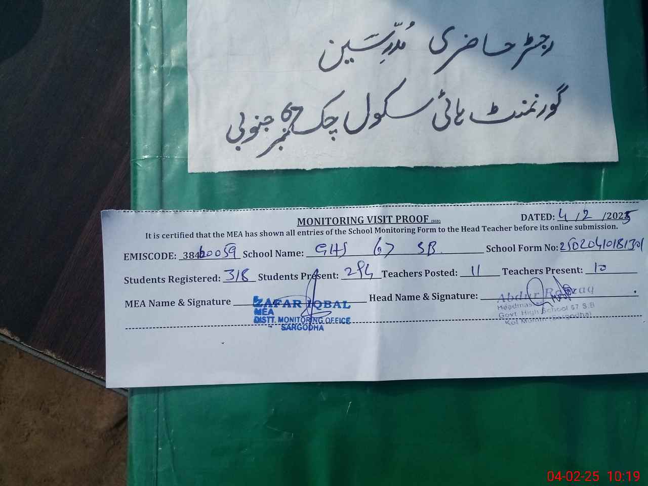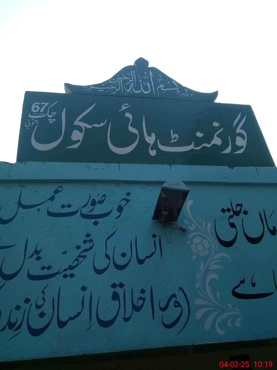 | EMIS Code: 38460059 | Name of School: GHS CHAK NO.67 SB | |||