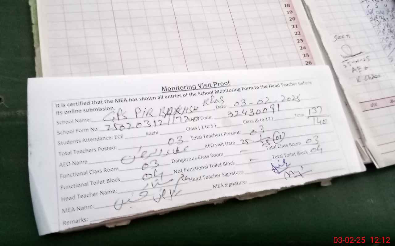 | EMIS Code: 32430091 | Name of School: GPS PIR BAKHSH KHAS | |||