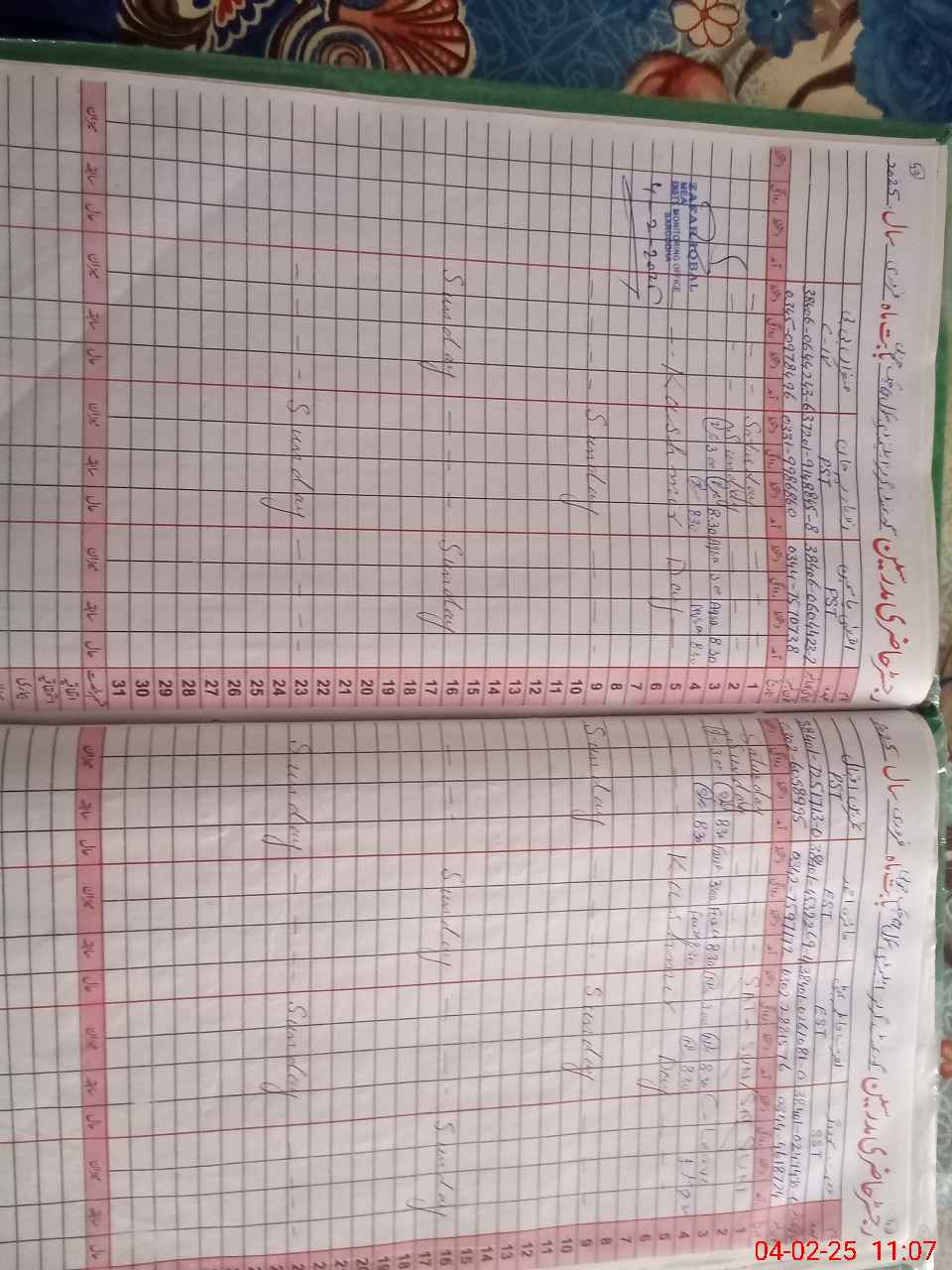 | CNIC | Full Name | Designation | R/C | Absence During Last Calender Month |
