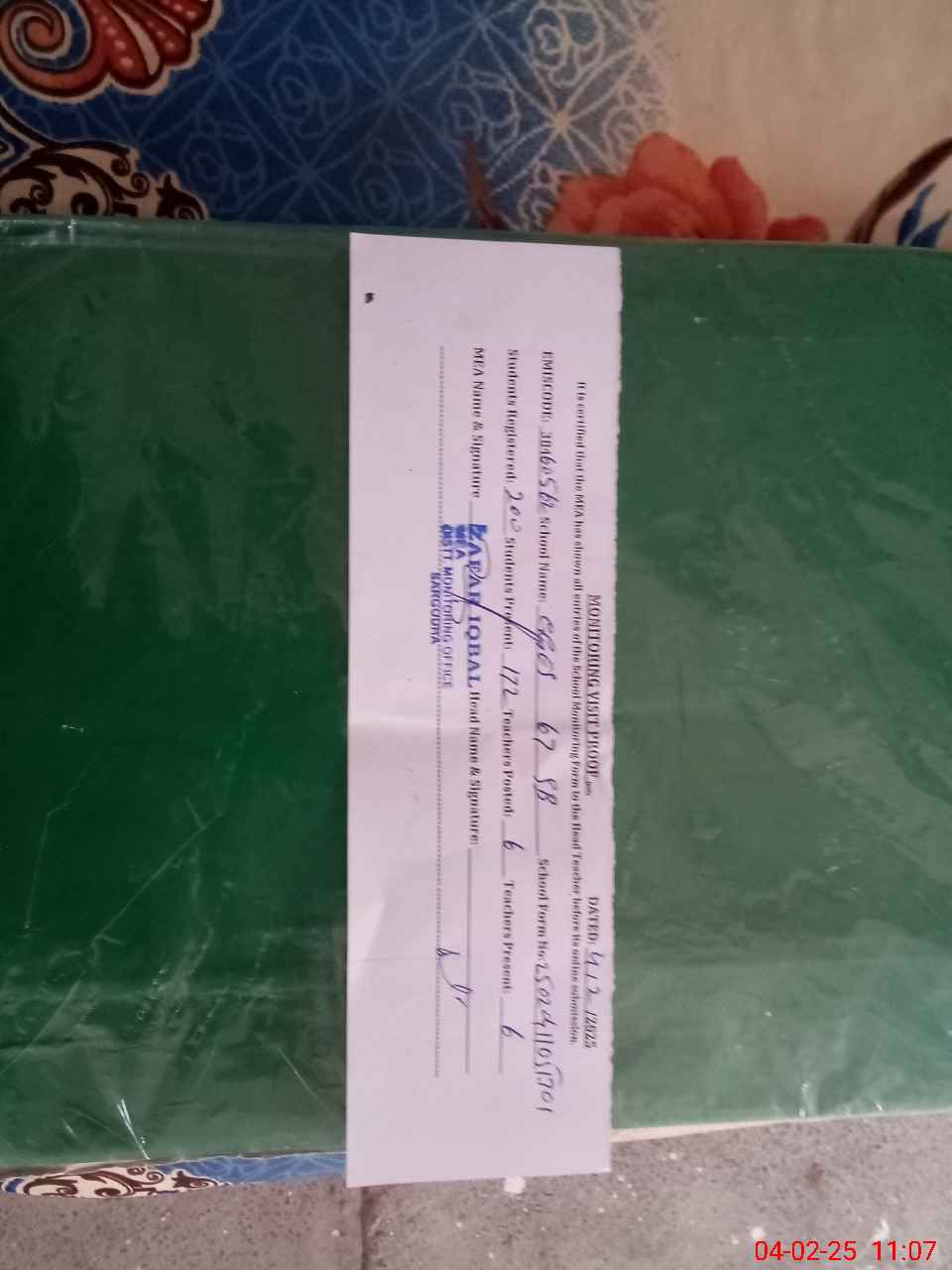 | Attendance Register | Head Teacher | MEA with School | Visit Proof |