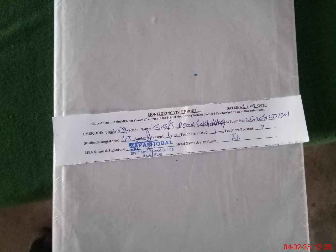 | EMIS Code: 38460594 | Name of School: GGPS DERA SUKH-E-KA | |||