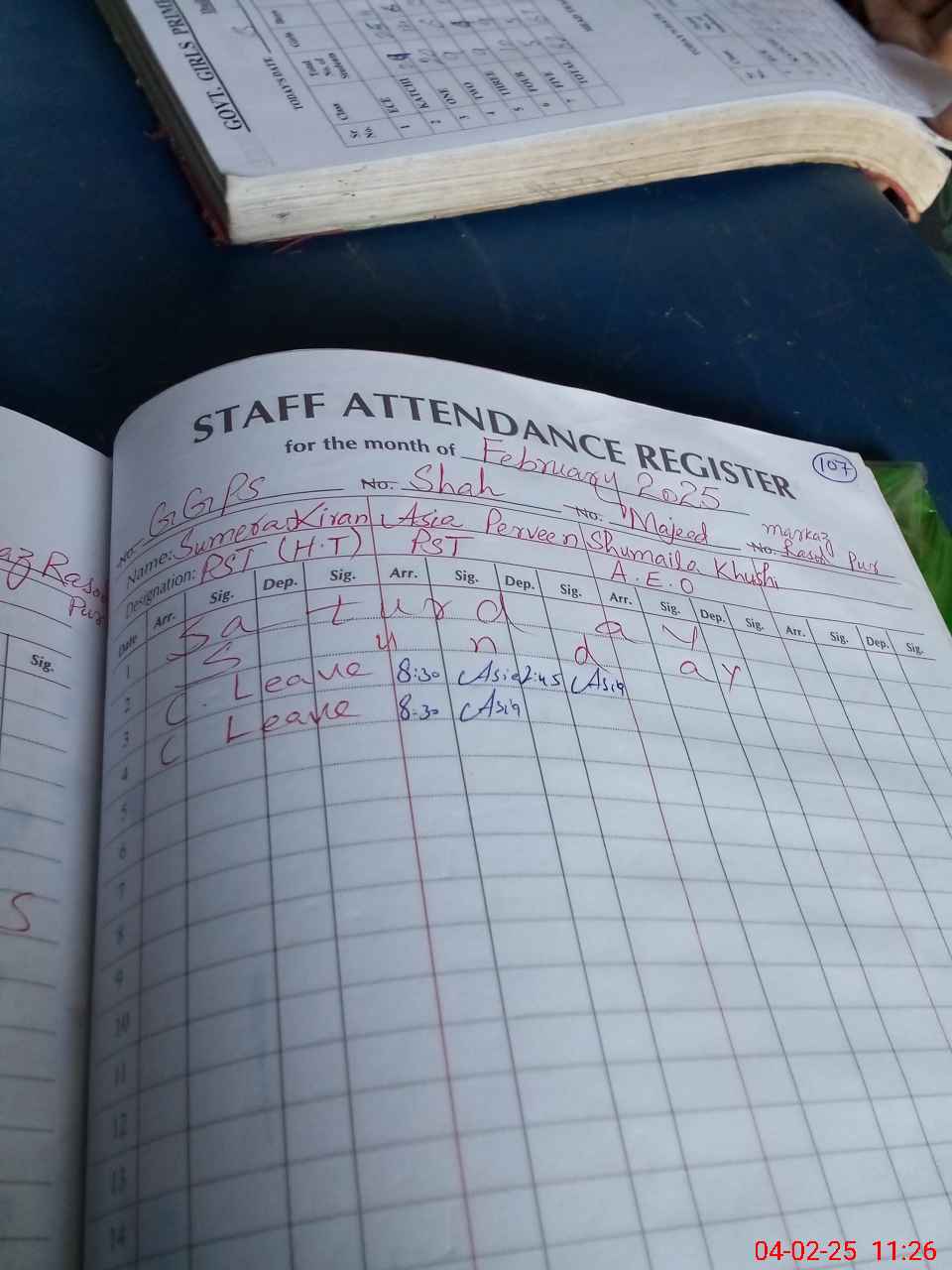 | Leave | Duty | Absent | Maternity | Medical | Ex- Pak |