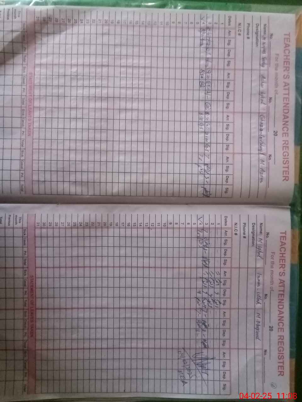 | CNIC | Full Name | Designation | R/C | Absence During Last Calender Month |