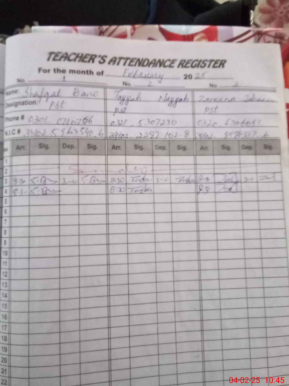 | Name: TA**** NA**** Designation: (School Headmaster's/Headmistress's) PST/PTC/JV Phone/Cell Number: 03**** |
