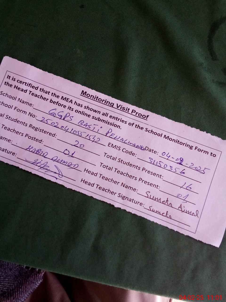 | EMIS Code: 31150356 | Name of School: GGPS BASTI PAHALWANKA | |||