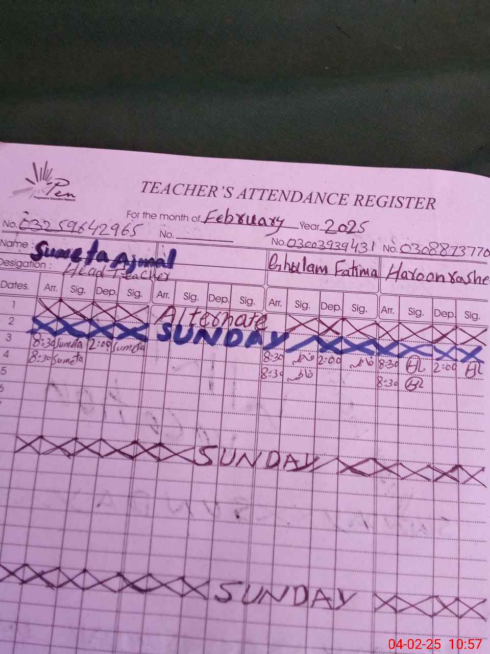 | Name: Su**** Aj**** Designation: (School Headmaster's/Headmistress's) PST Phone/Cell Number: 03**** |
