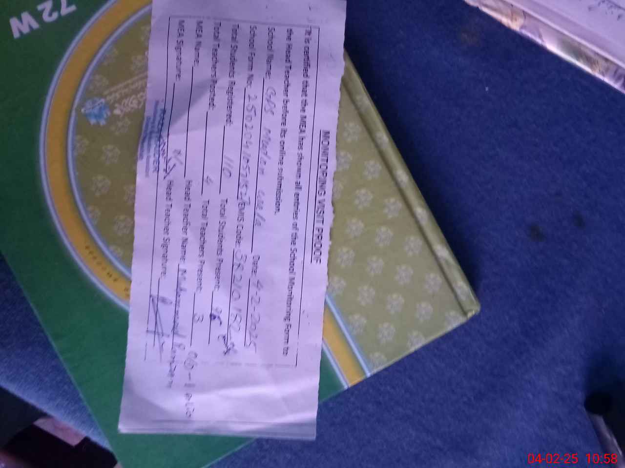 | Attendance Register | Head Teacher | MEA with School | Visit Proof |