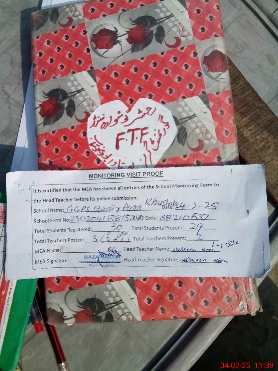 | EMIS Code: 38210537 | Name of School: GGPS QADIR PURA KHUSHAB | |||