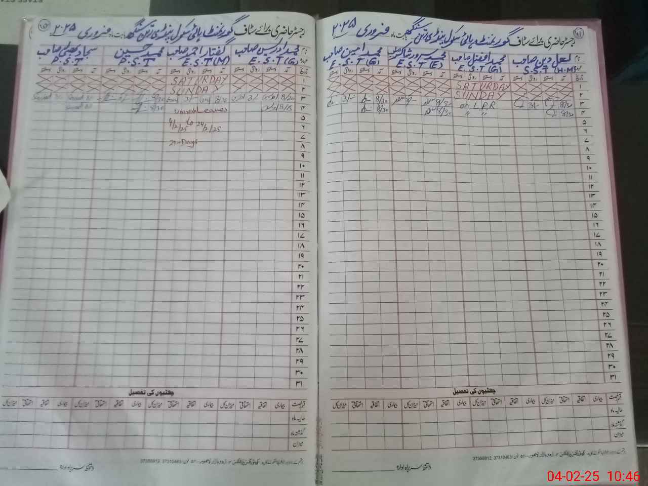 | CNIC | Full Name | Designation | R/C | Absence During Last Calender Month |