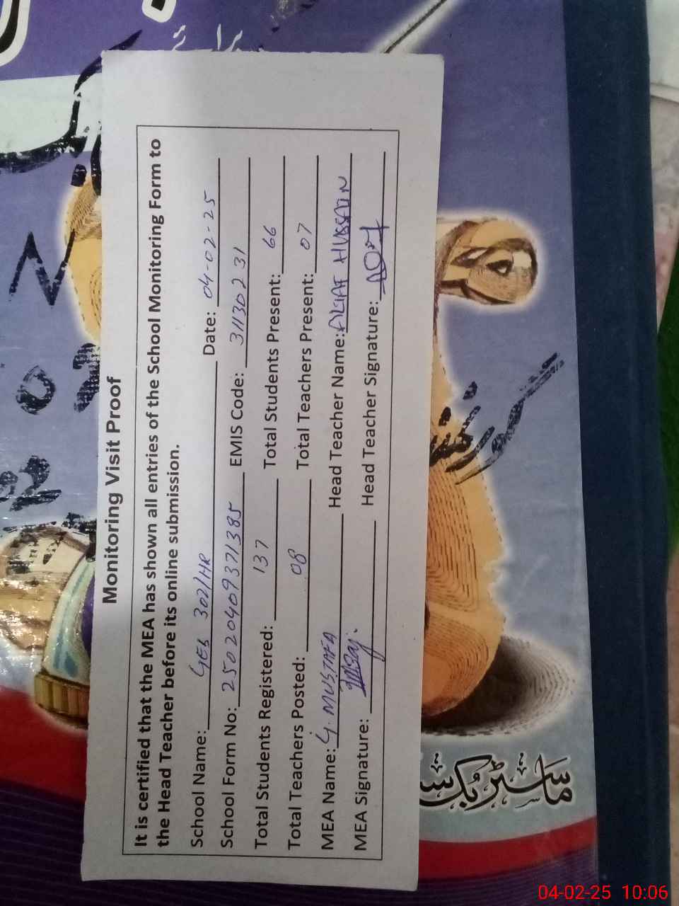 | EMIS Code: 31130231 | Name of School: GES CHAK NO 302 HR | |||