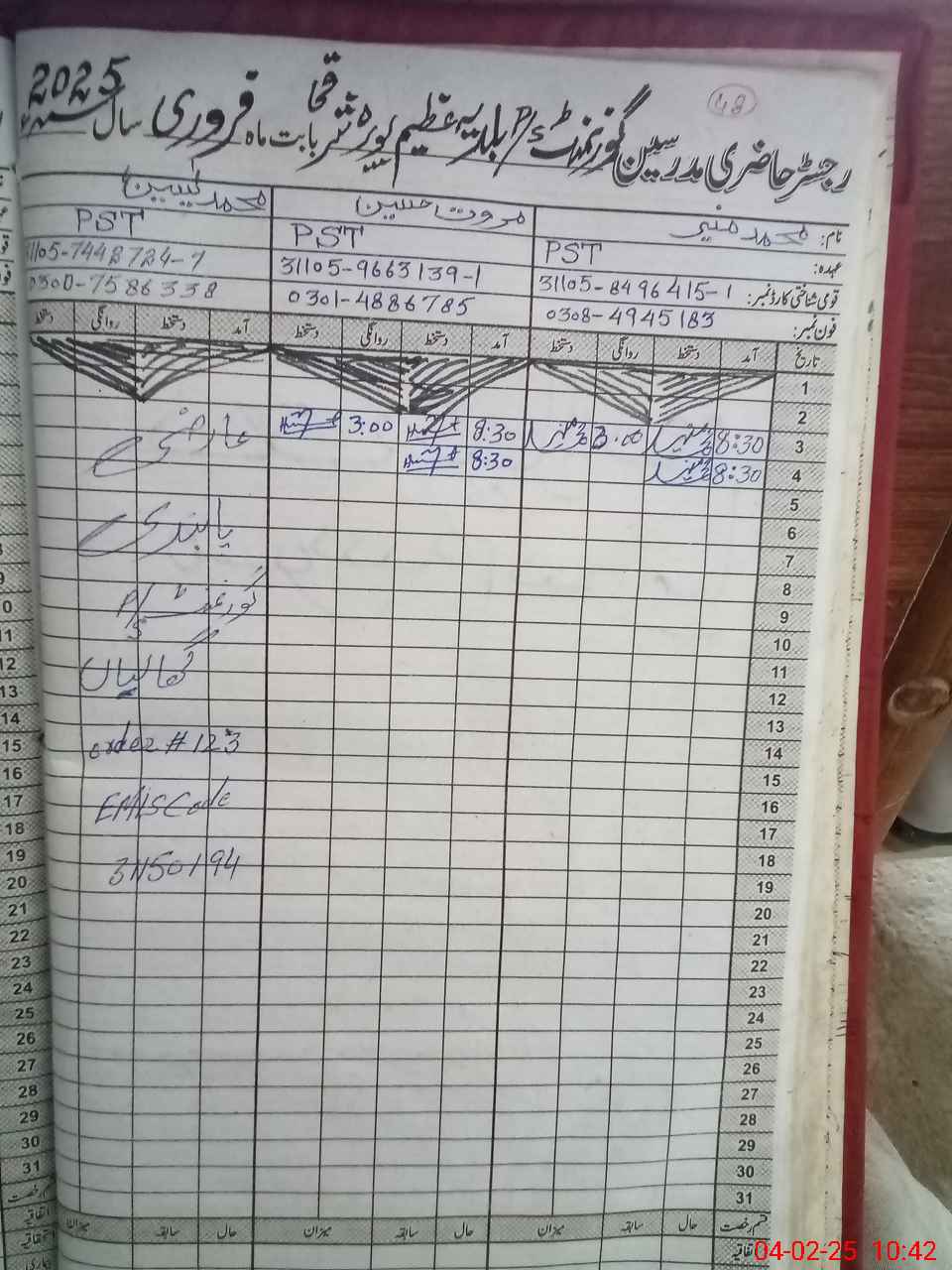| Name: MU**** HU**** Designation: (School Headmaster's/Headmistress's) PST Phone/Cell Number: 03**** |