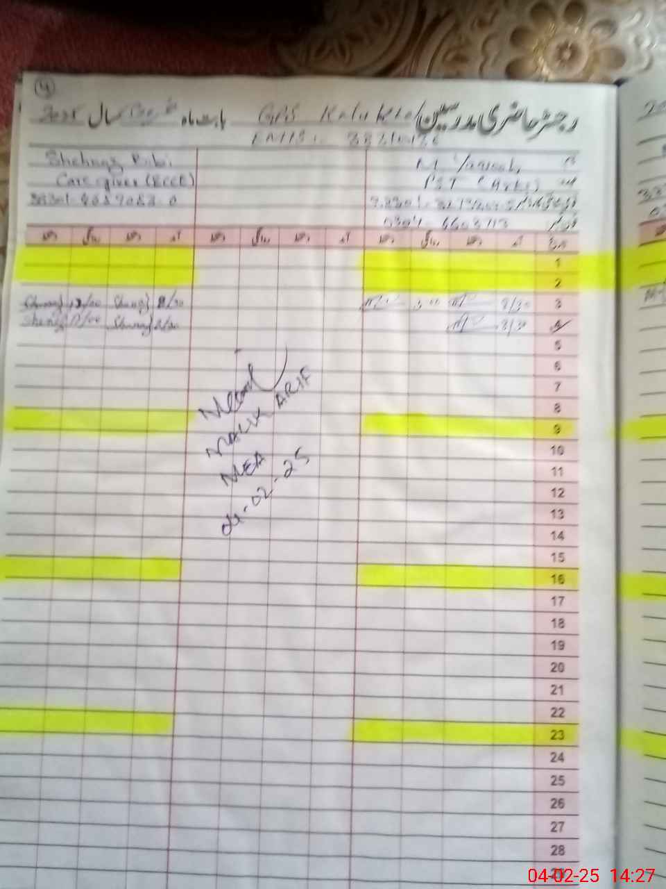 | Name: MU**** KH**** Designation: (School Headmaster's/Headmistress's) PST Phone/Cell Number: 03**** |