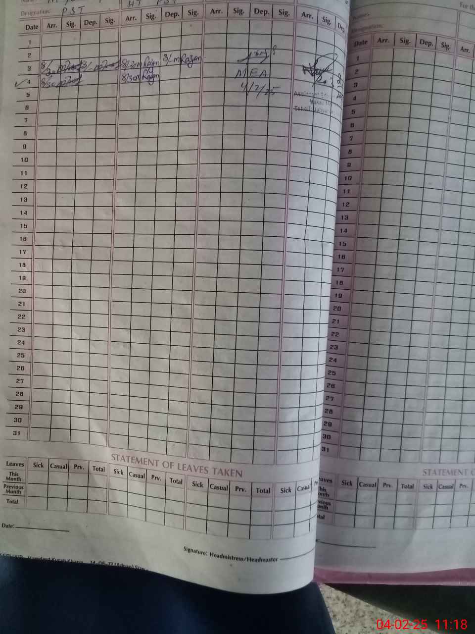 | Name: Me**** Ak**** Designation: (School Headmaster's/Headmistress's) SST,(Science) Phone/Cell Number: 03**** |