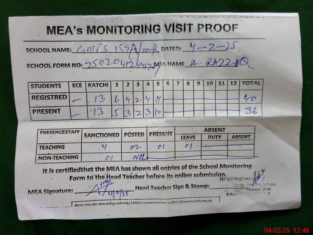 | EMIS Code: 36440513 | Name of School: GMPS 159-A/10-R, JAHANIAN | |||