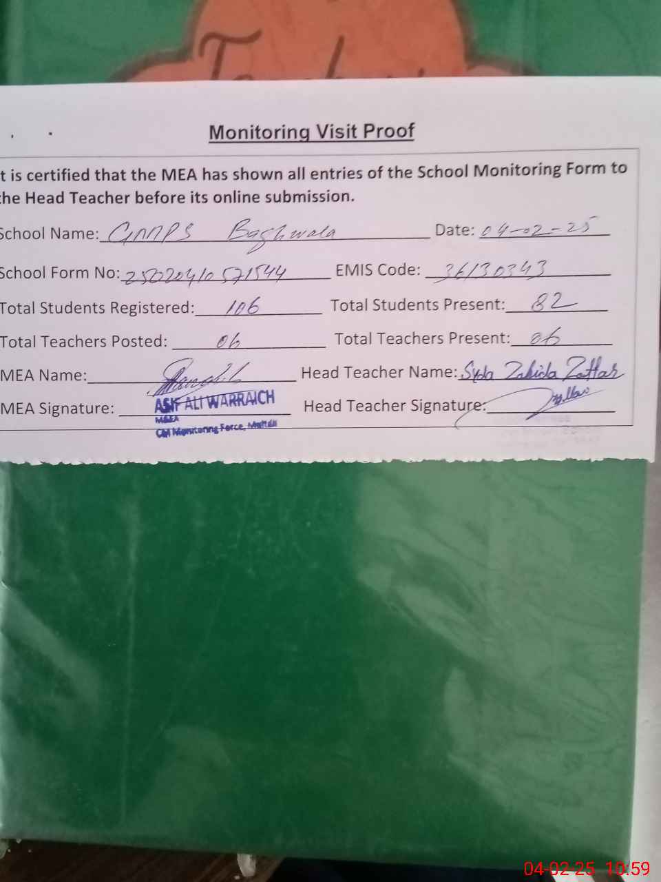 | EMIS Code: 36130343 | Name of School: GMPS BAGH WALA NEAR B Z UNIVERSITY | |||
