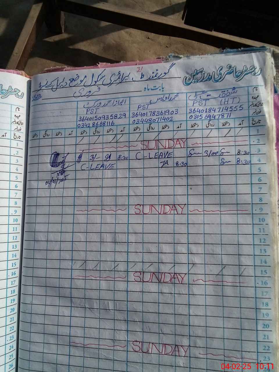 | Name: SH**** AL**** Designation: (School Headmaster's/Headmistress's) PST Phone/Cell Number: 03**** |