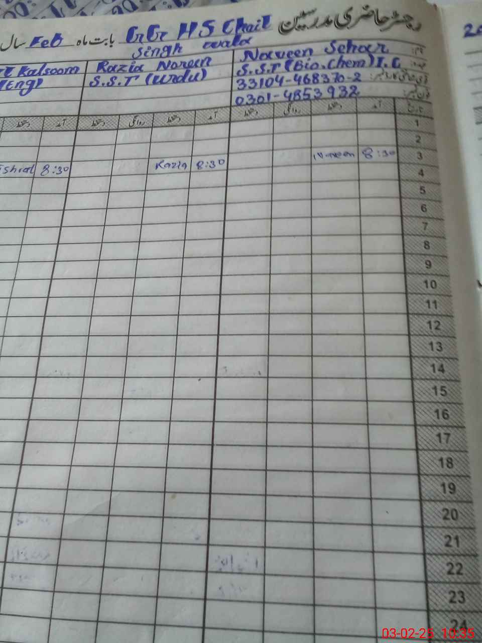 | Name: FA**** MI**** Designation: (School Headmaster's/Headmistress's) SSE(phs) Phone/Cell Number: 03**** |