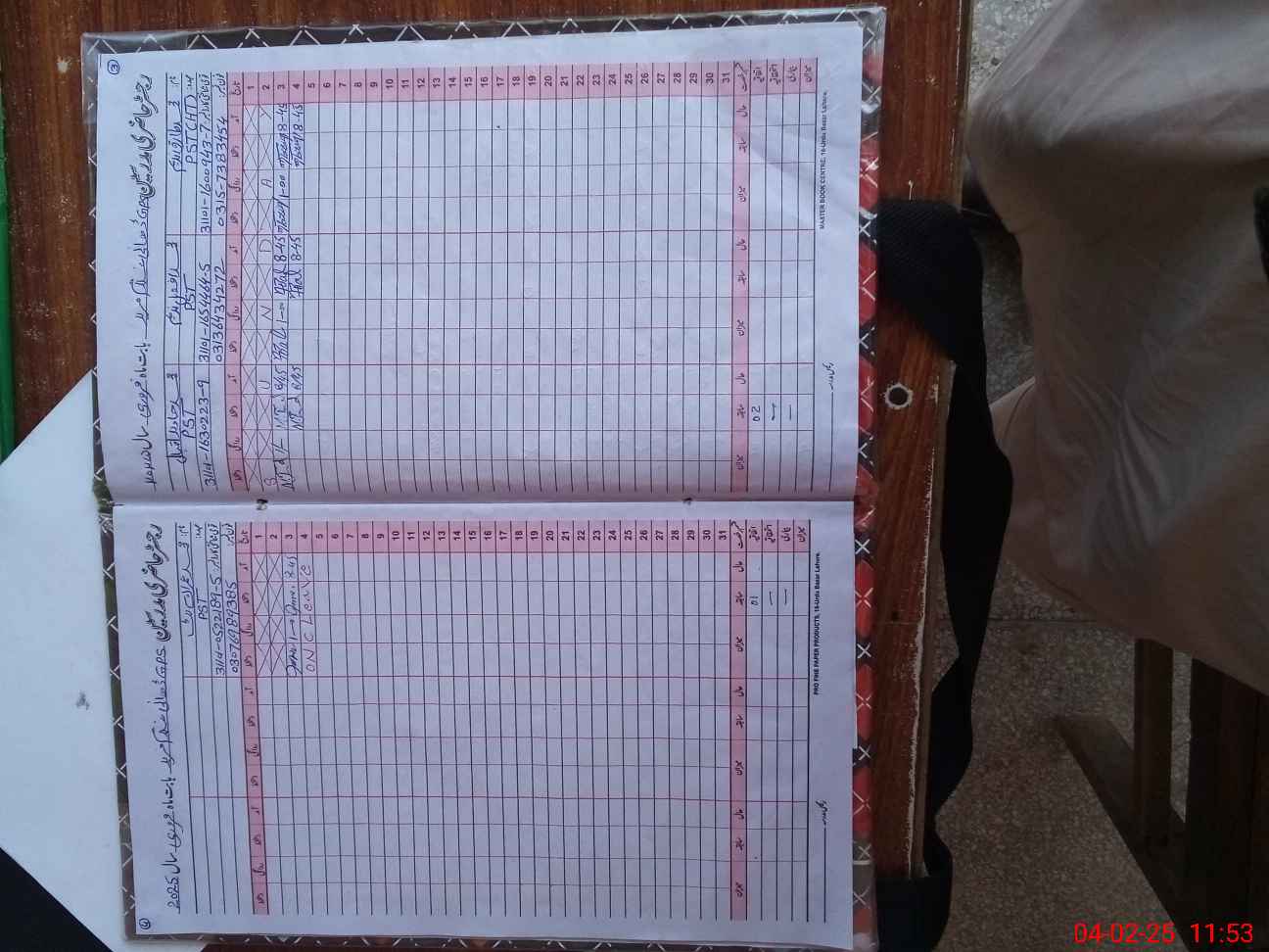 | CNIC | Full Name | Designation | R/C | Absence During Last Calender Month |