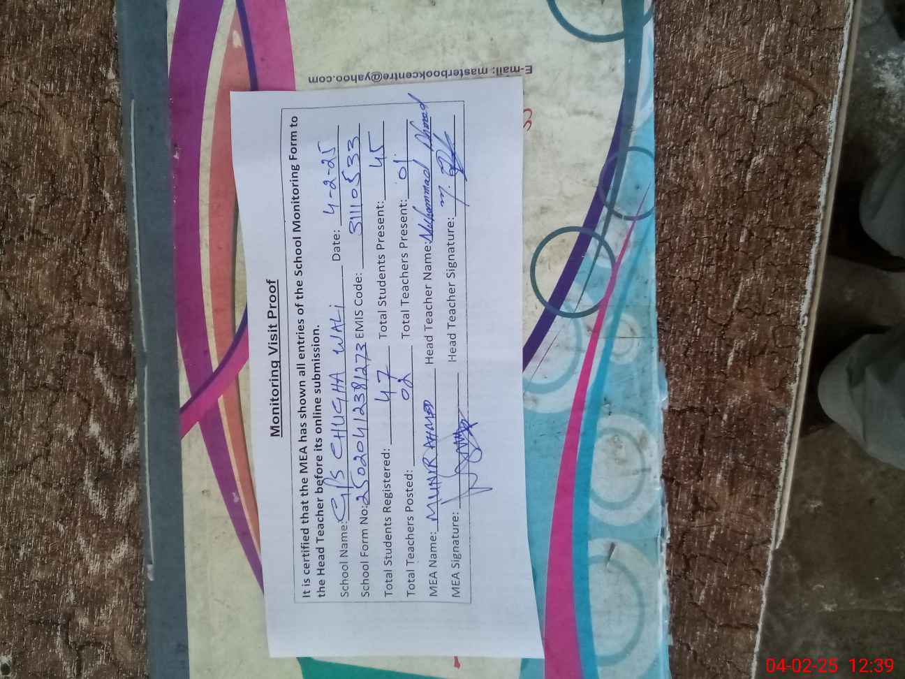 | EMIS Code: 31110533 | Name of School: GPS CHUGHA WALI | |||