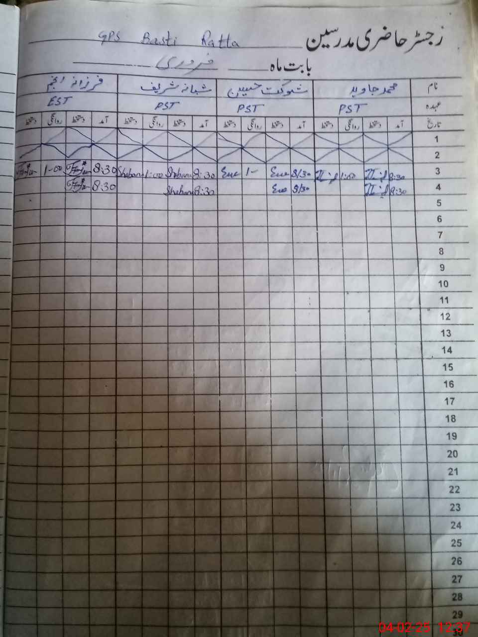 | CNIC | Full Name | Designation | R/C | Absence During Last Calender Month |