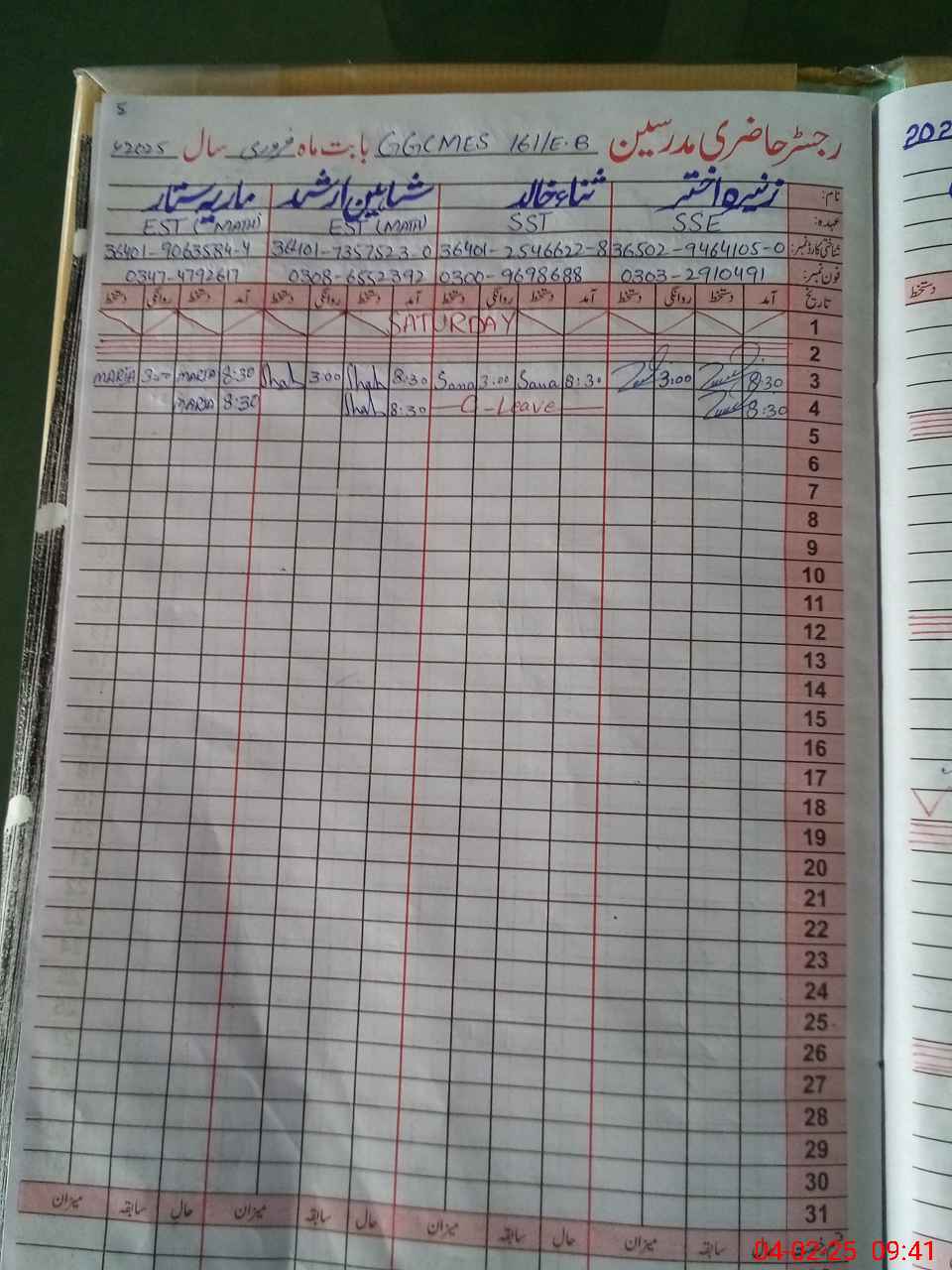 | Name: ZU**** AK**** Designation: (School Headmaster's/Headmistress's) SSE (PHYSICS) Phone/Cell Number: 03**** |
