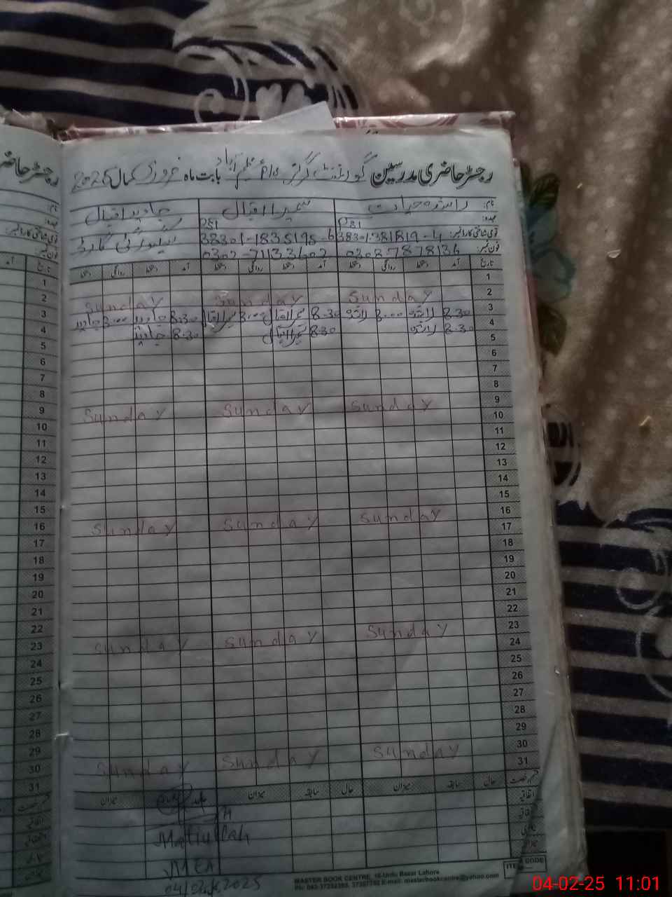 | Total no. of Classrooms: 4 No. of Classrooms Used for Teaching: 4 No. of Classrooms Storing Old Furniture, FTBs, etc: 0Comments if Any: Two toilets nonfunctional PST Teacher Sumera Iqbal is present and ordered by CEO Mianwali from 4 October 2024 to till because her school ggpd Gidranwala 38310255 handed over to PEF will available till next transfer round for adjustment Head PST Bilqees |