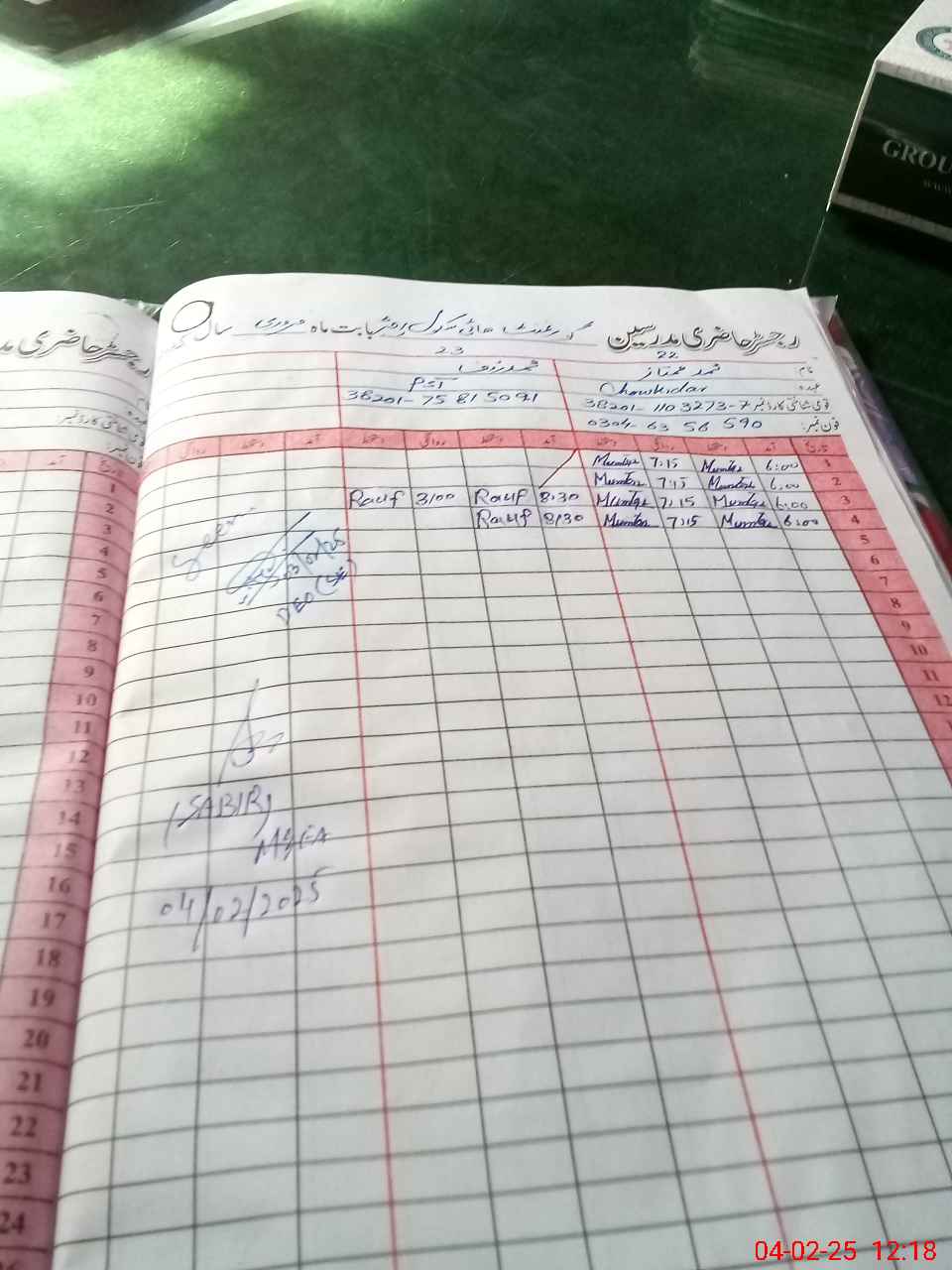 | CNIC | Full Name | Designation | R/C | Absence During Last Calender Month |