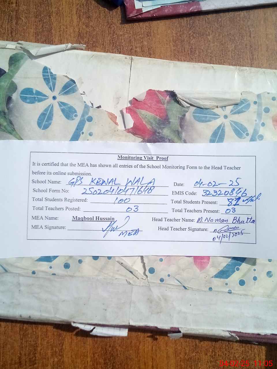 | EMIS Code: 32320846 | Name of School: GPS KEWAL WALA | |||