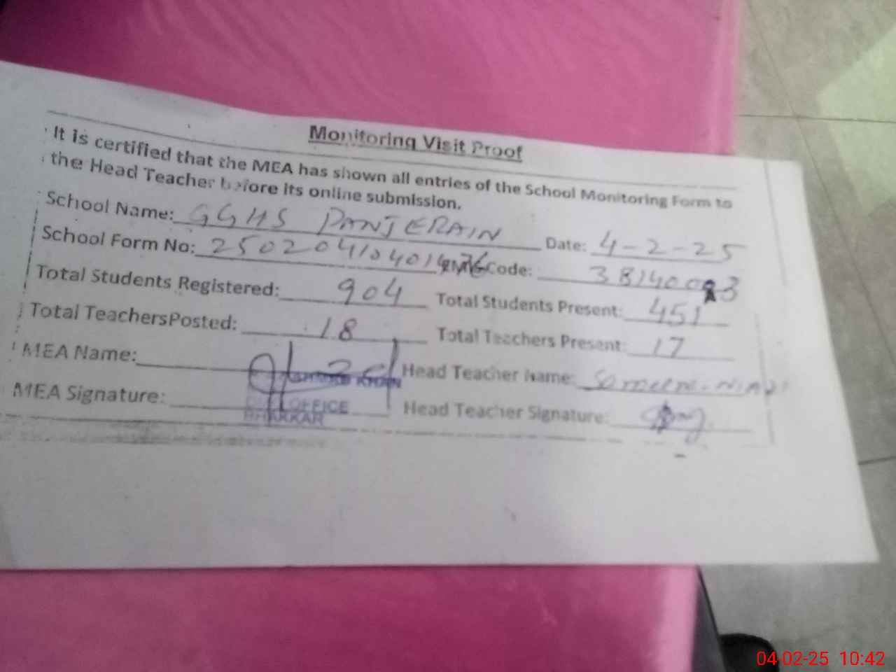 | EMIS Code: 38140093 | Name of School: GGHS PANJGRAIN | |||