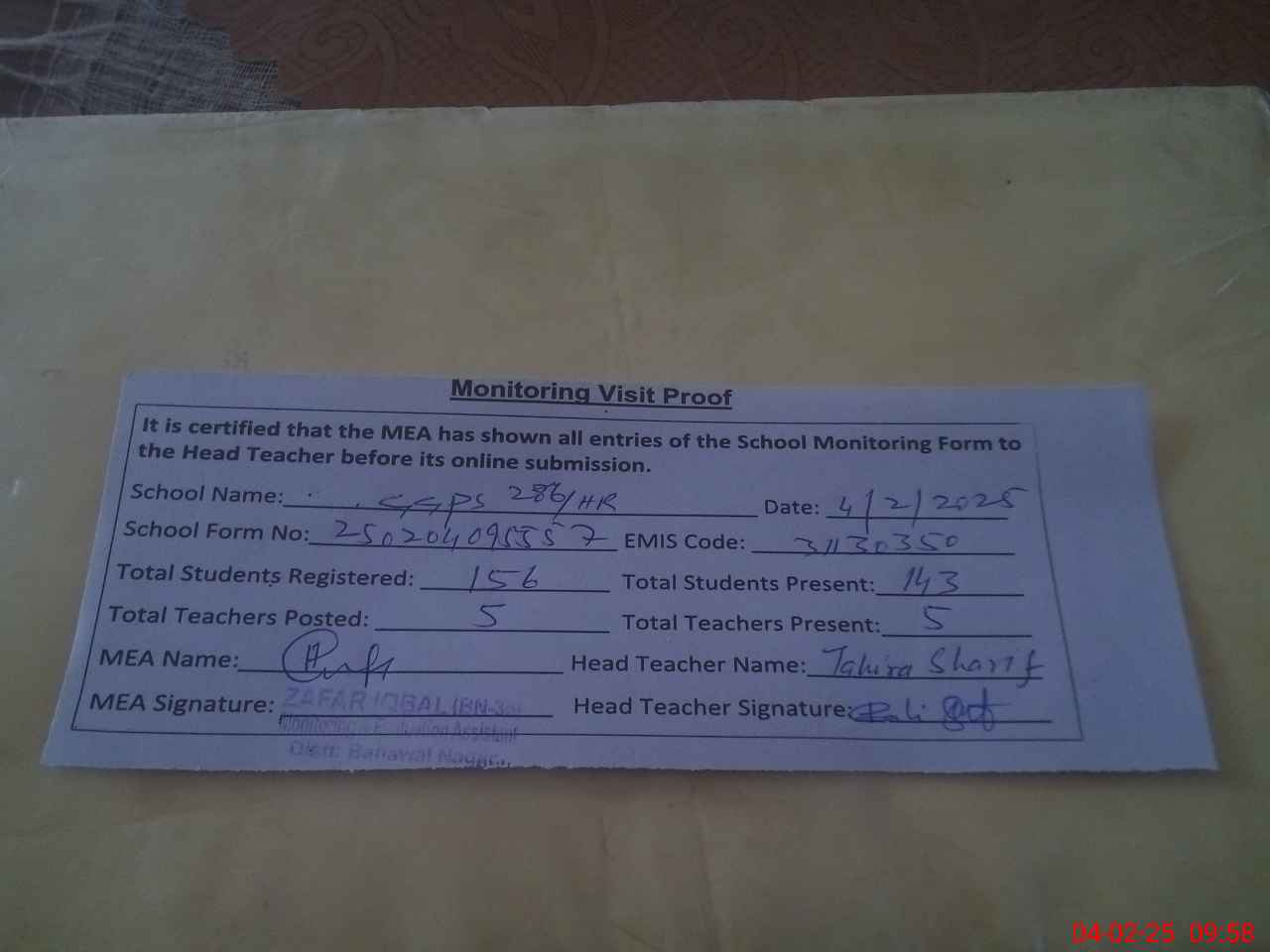 | EMIS Code: 31130350 | Name of School: GGPS CHAK NO 286 HR | |||