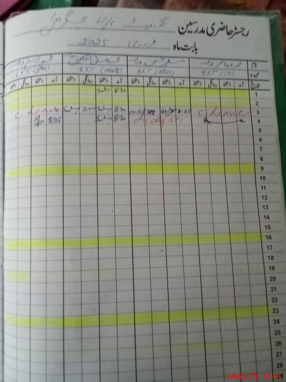 | CNIC | Full Name | Designation | R/C | Absence During Last Calender Month |
