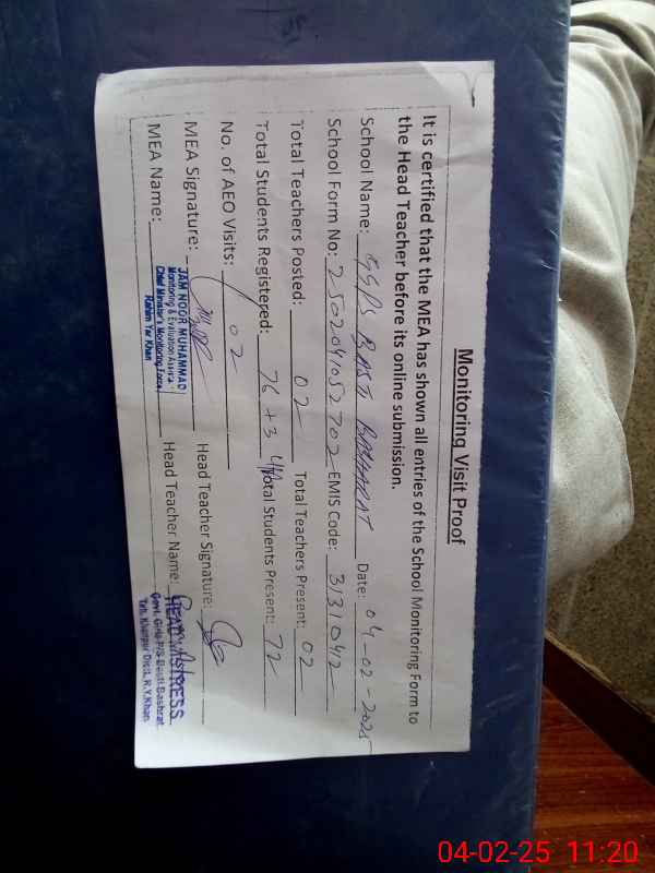 | EMIS Code: 31310412 | Name of School: GGPS BASTI BASHARAT | |||