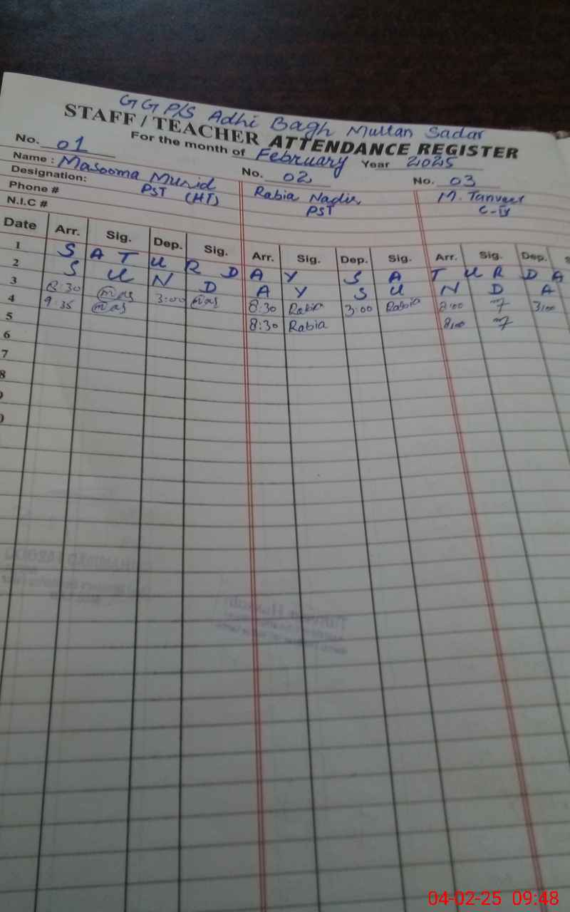 | EMIS Code: 36130605 | Name of School: GGPS AADHI BAGH | |||