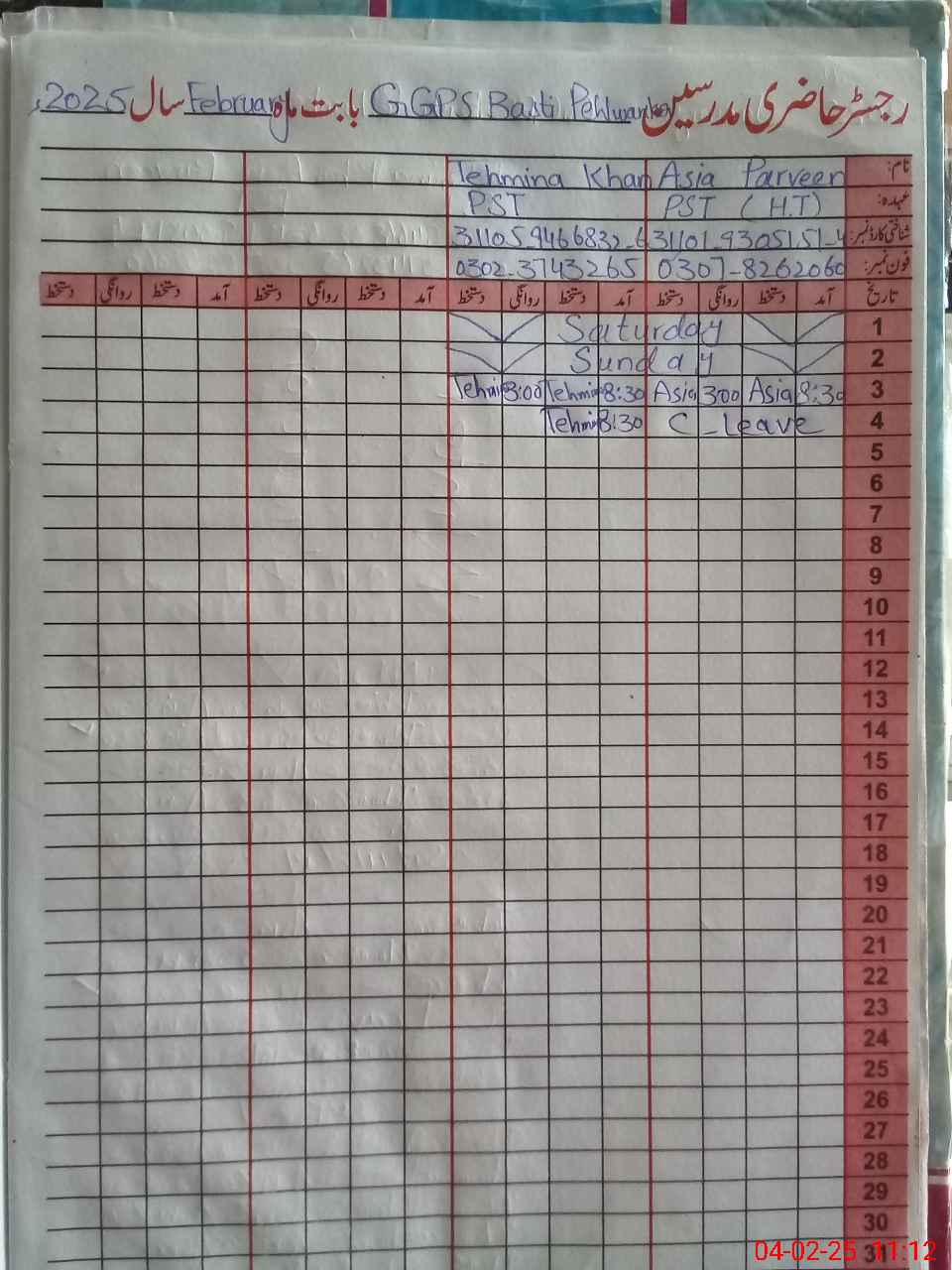 | Name: As**** Pa**** Designation: (School Headmaster's/Headmistress's) PST Phone/Cell Number: 03**** |