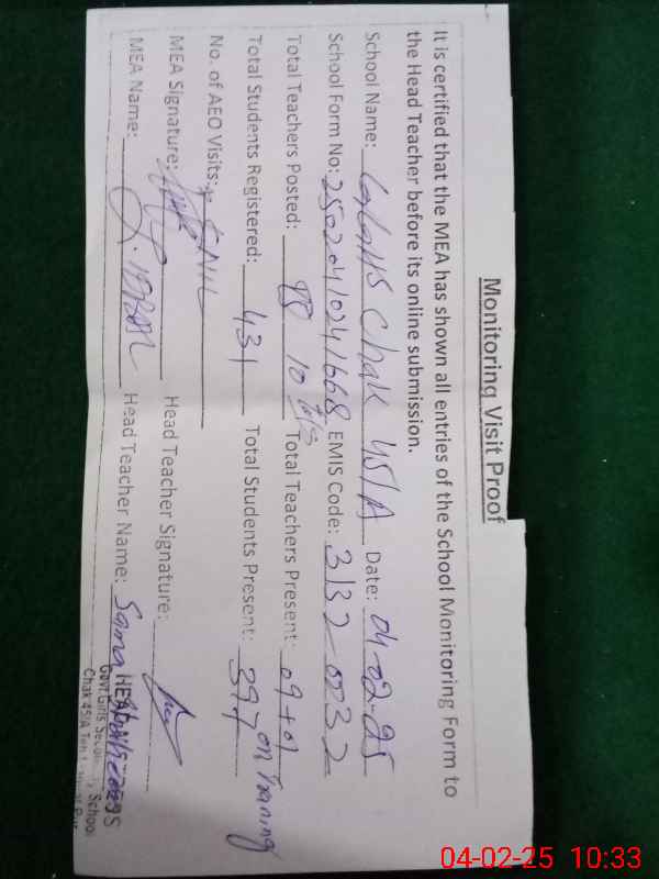| EMIS Code: 31320032 | Name of School: GGHS CHAK NO. 45/A | |||