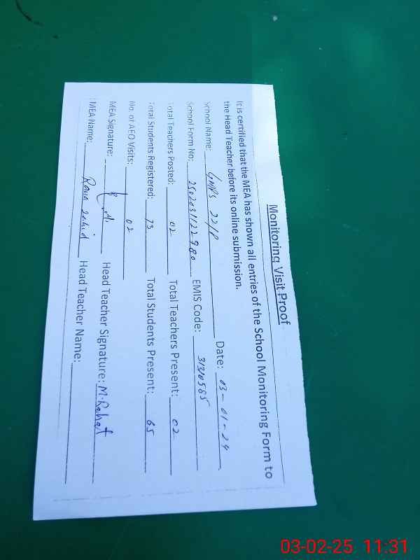 | Certified that this School was Inspected by the Undersigned MEA/DMO Today and the Information Stated Above is as Per Record. | |||||