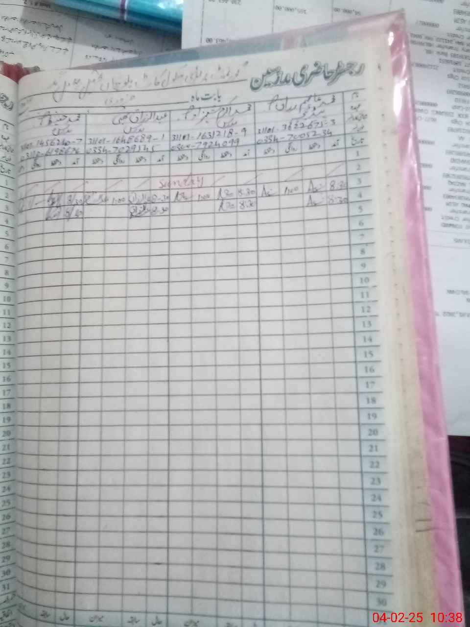 | CNIC | Full Name | Designation | R/C | Absence During Last Calender Month |