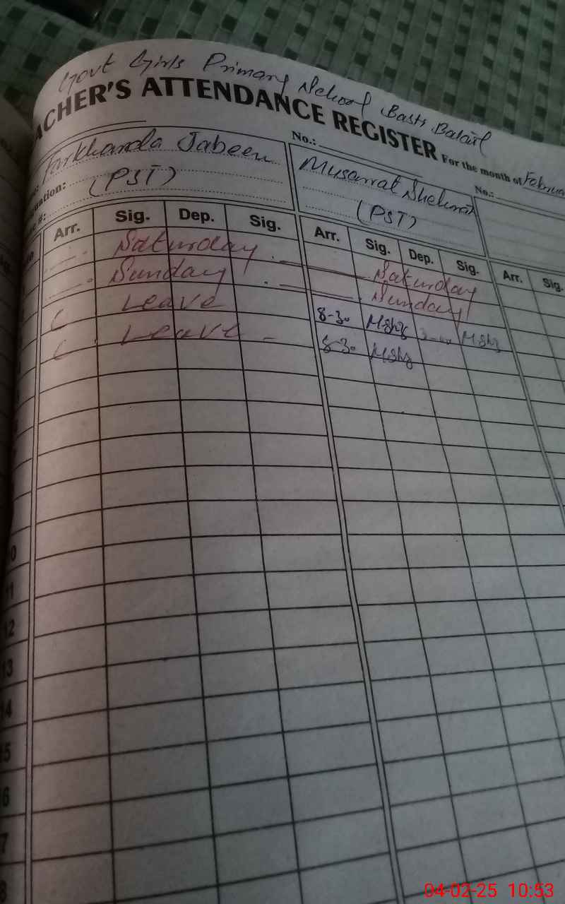 | CNIC | Full Name | Designation | R/C | Absence During Last Calender Month |